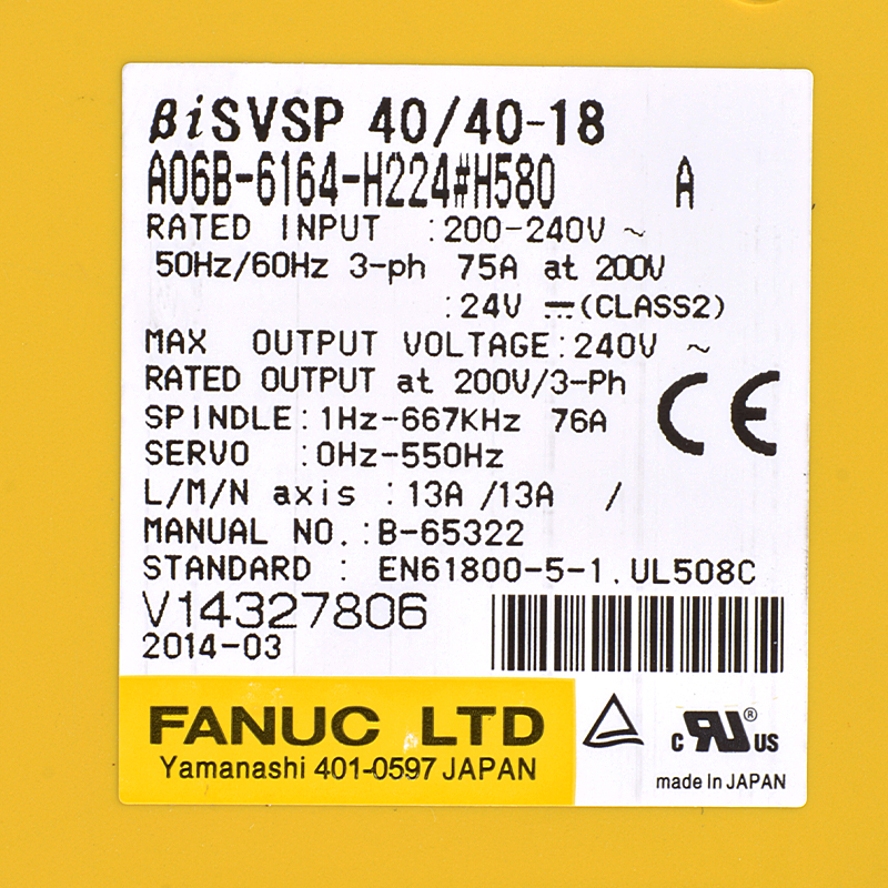 Ka peia e Fanuc A06B-6164-H224#H580 Fanuc BiSVSP 40/40-18